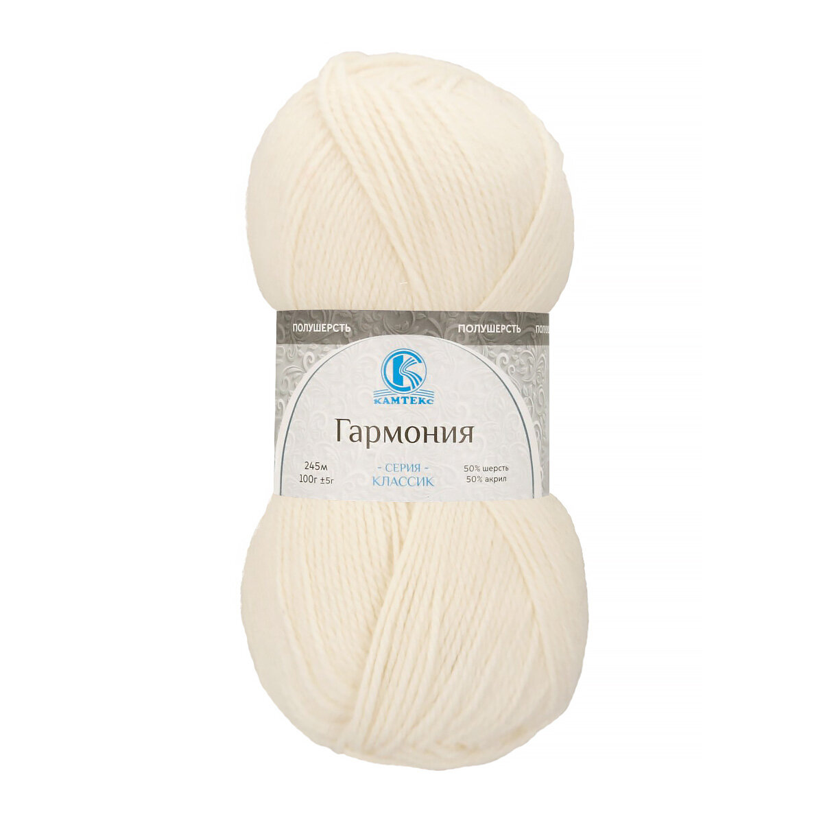 Пряжа Камтекс Гармония белый (205), 50%акрил/50%импортная полутонкая шерсть, 245м, 100г, 1шт
