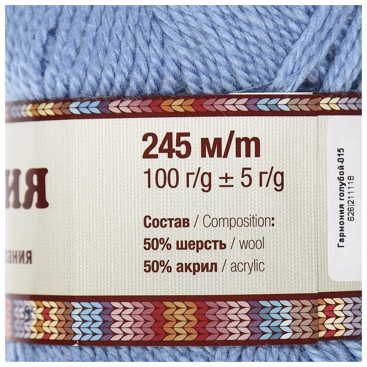 Купить Пряжа Камтекс Гармония голубой (015), 50%акрил/50%импортная полутонкая шерсть, 245м, 100г, 1шт