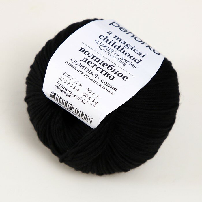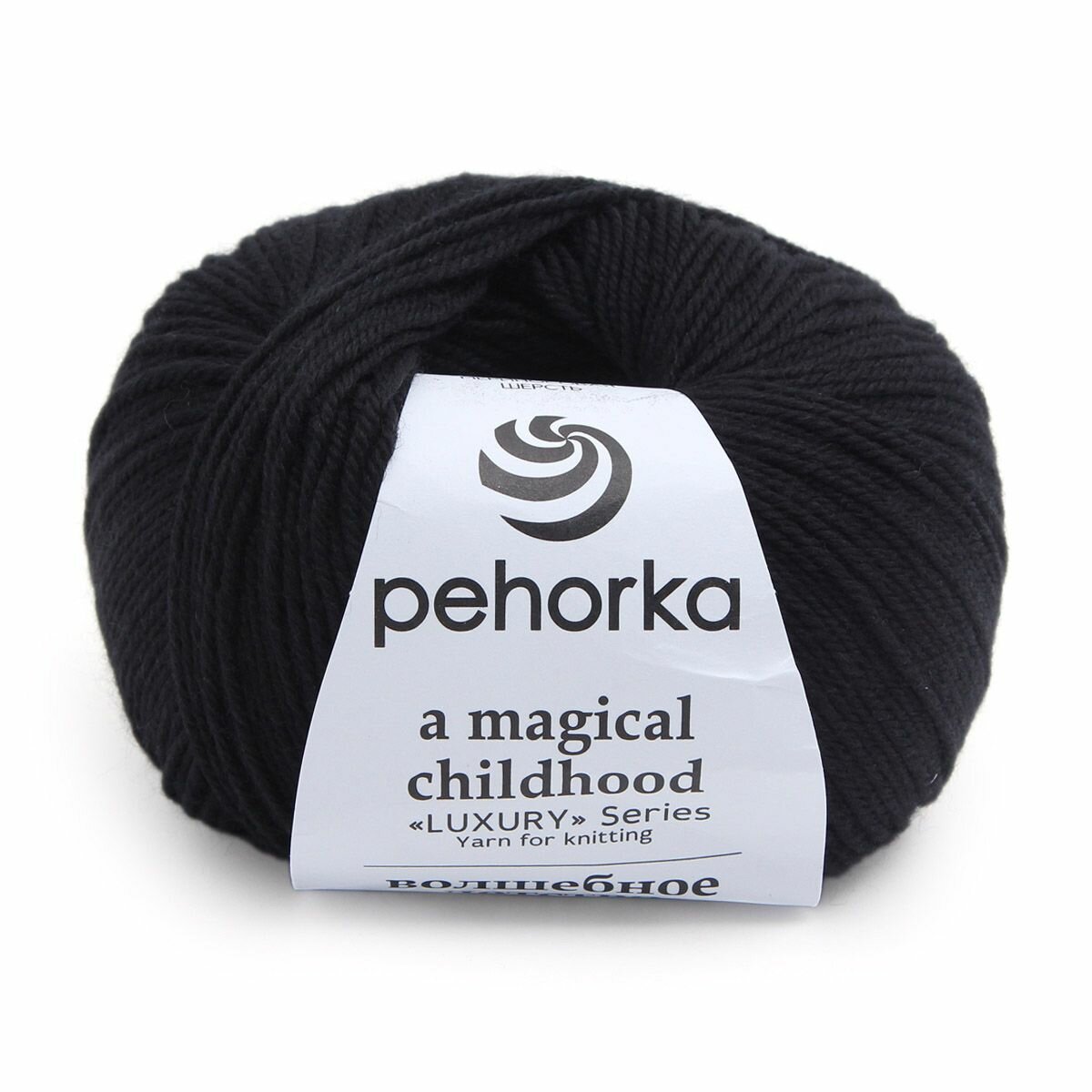 Купить Пряжа Пехорка 'Волшебное детство' 50г, 220м (100% импортная шерсть австралийский меринос) (02 черный), 5 мотков