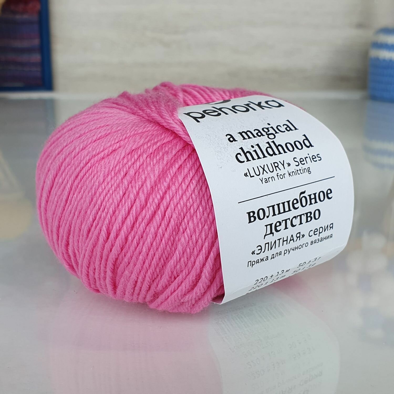 Пряжа Волшебное детство Пехорка, св. бегония - 180, 100% мериносовая шерсть, 5 мотков, 50 г, 220 м.