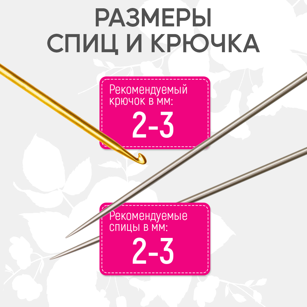 | Рекомендуемый размер спиц | 2 мм, 3 мм, 4 мм, 4.5 мм, 5 мм |