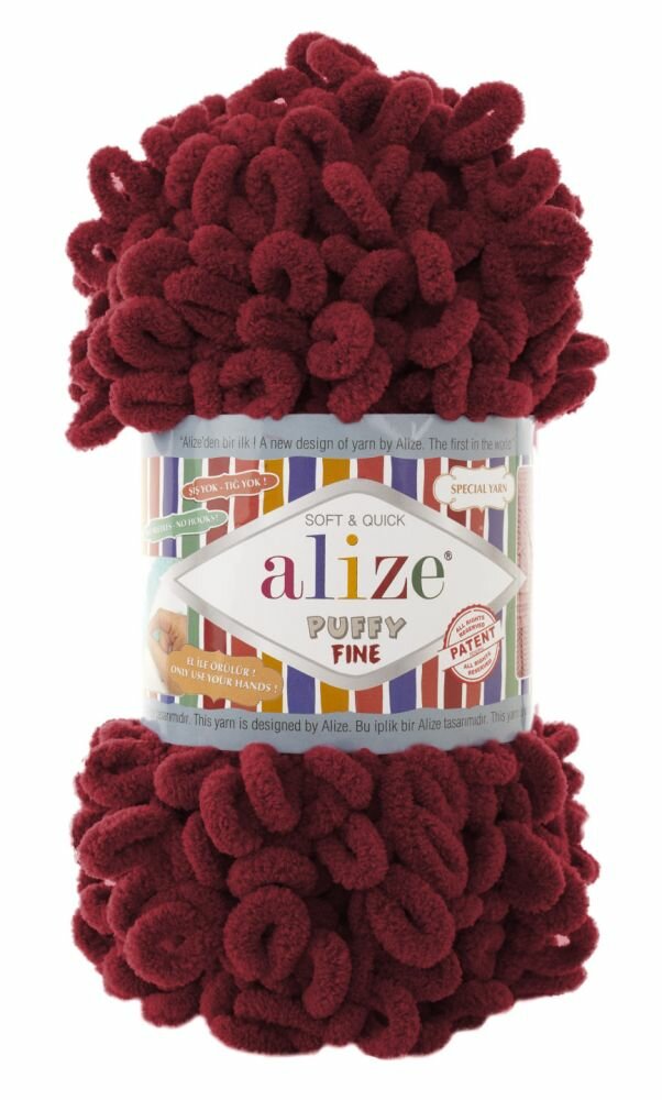 Купить Пряжа Alize Puffy fine вишня (107), 100%микрополиэстер, 14.5м, 100г, 5шт