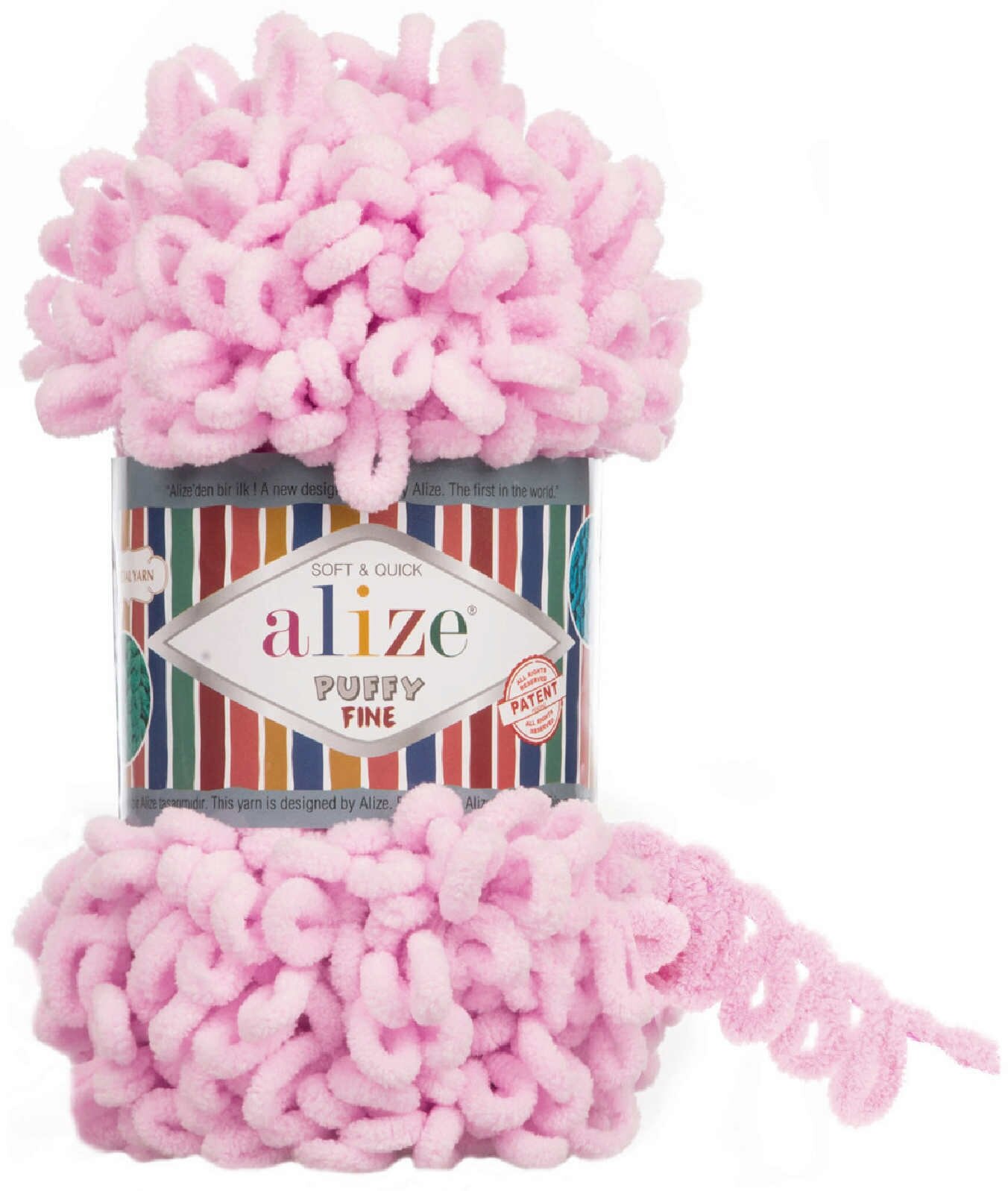 Купить Пряжа Alize Puffy fine светло-розовый (194), 100%микрополиэстер, 14.5м, 100г, 5шт