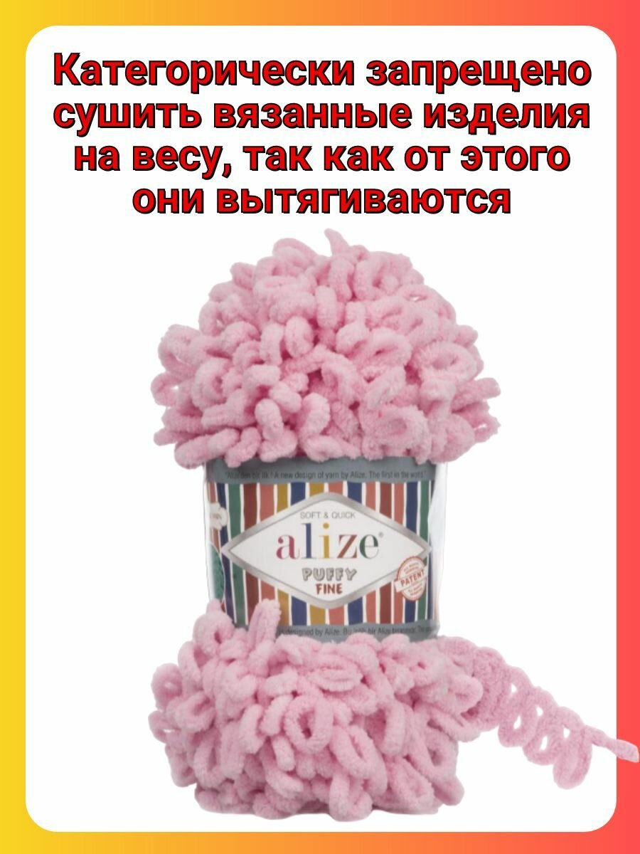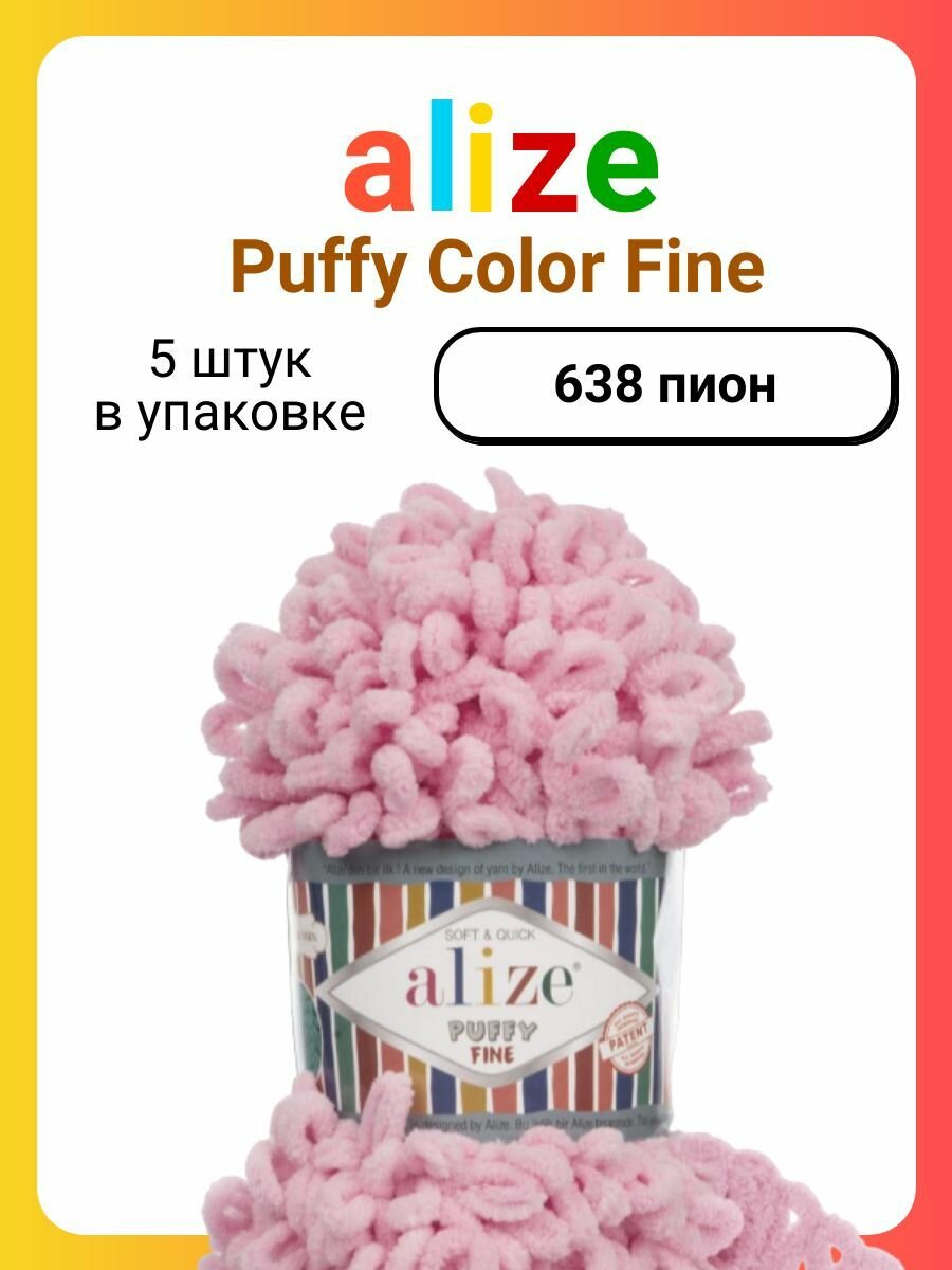 Купить Пряжа для вязания Alize Puffy Fine 638 пион, 100 г, 14 м, 5 штук