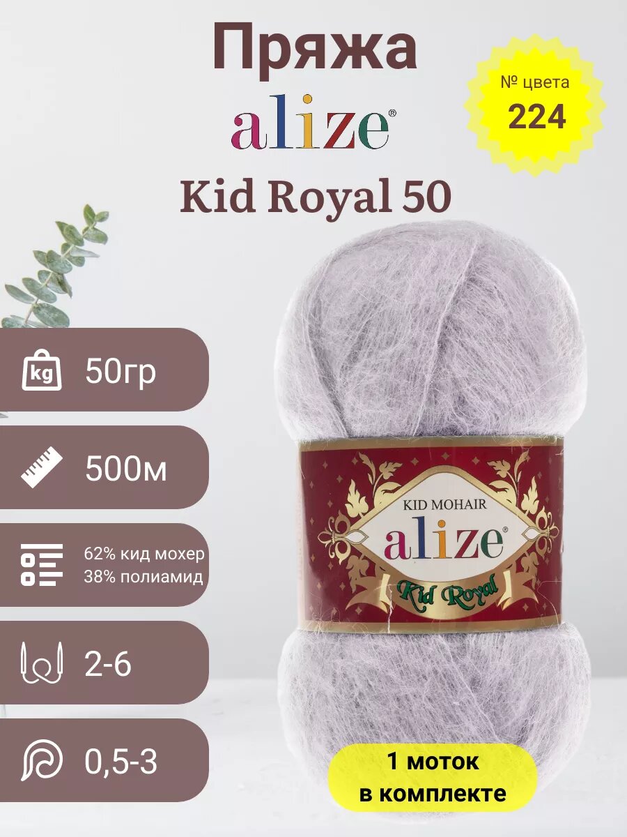 Пряжа Alize Kid Royal 50 зимнее небо (224), 62%кид мохер/38%полиамид, 500м, 50г, 1шт
