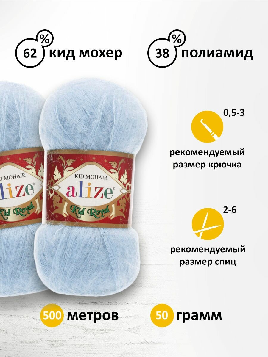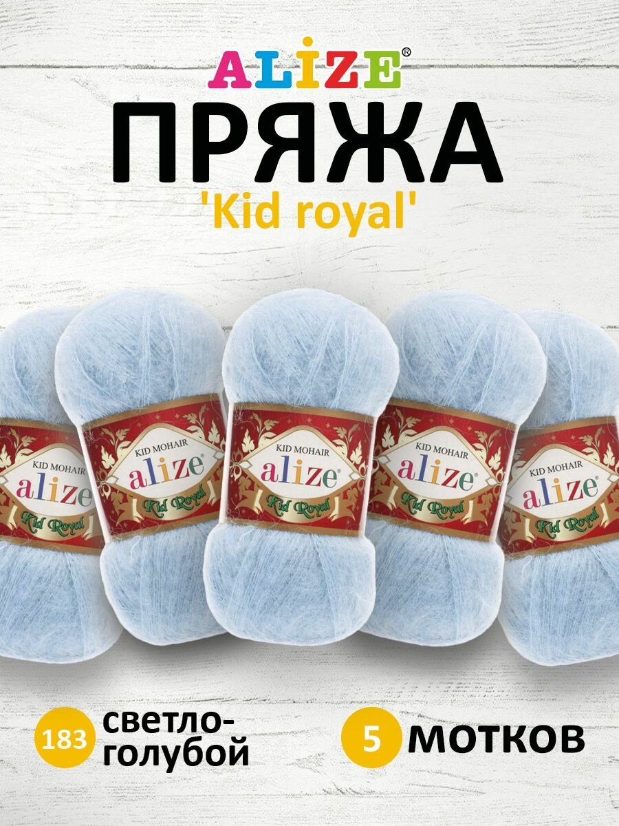 Пряжа для вязания ALIZE KID ROYAL 50 Ализе Кид Роял: 183 (светло-голубой) / 3 шт / 500 м / 50 г / 62% мохер, 38% полиамид