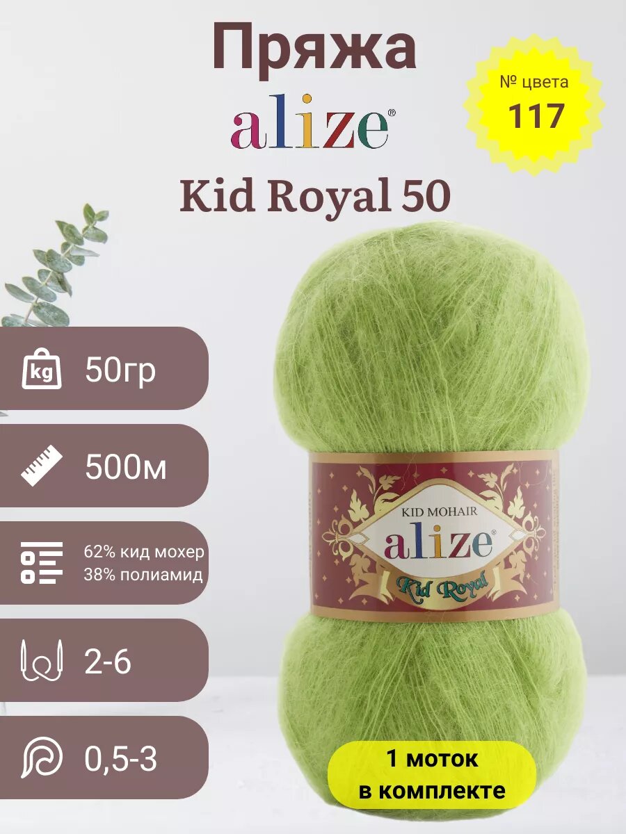 Купить Пряжа Alize Kid Royal 50, 62 % мохер, 38 % полиамид, 50 г, 500 м, 1 шт., 117 фисташка