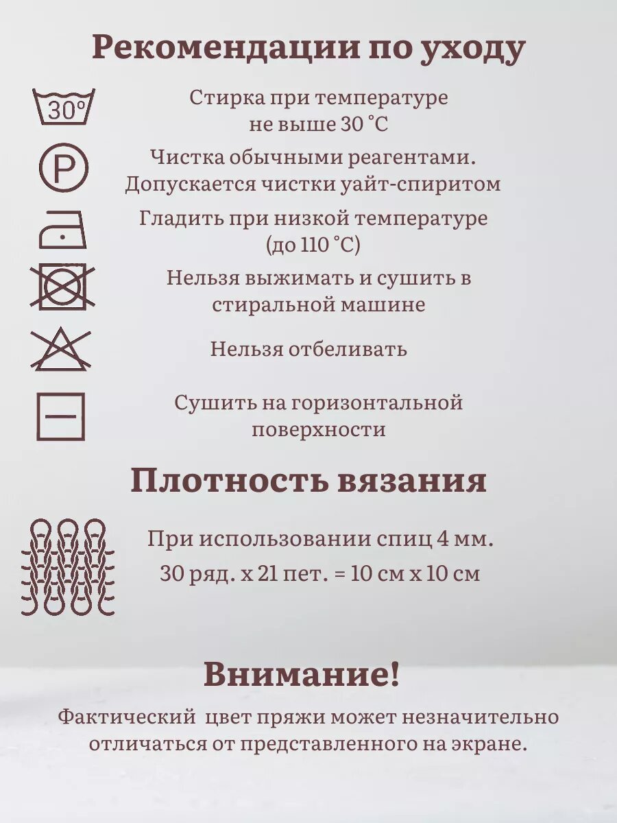 | Плотность вязания для образца 10х10 см | 11 р.-13 п. |