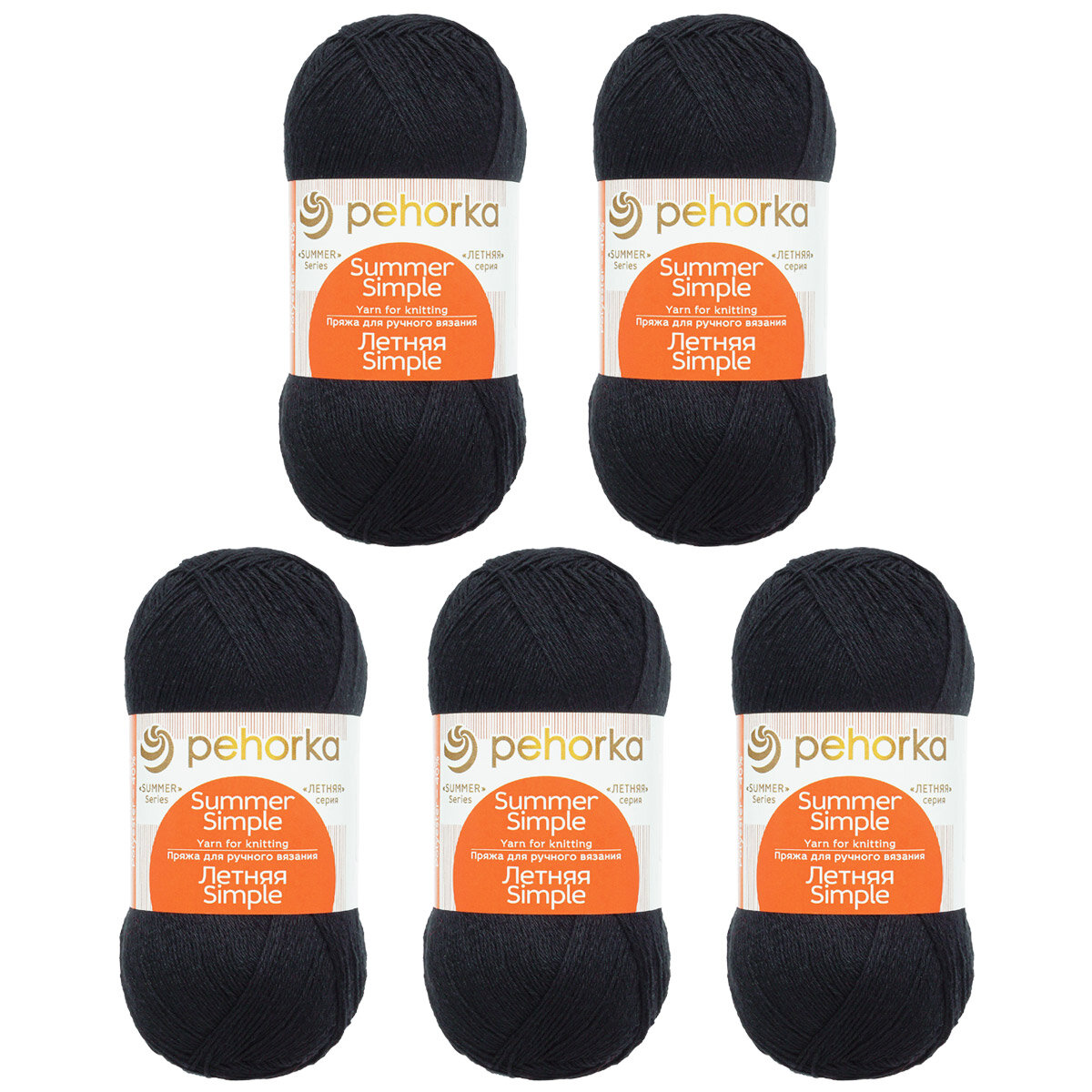 Пряжа Пехорка Летняя Simple Черный (02) 5 мотков 100 г/500 м (60% хлопок, 40% полиэстер) летняя симпл