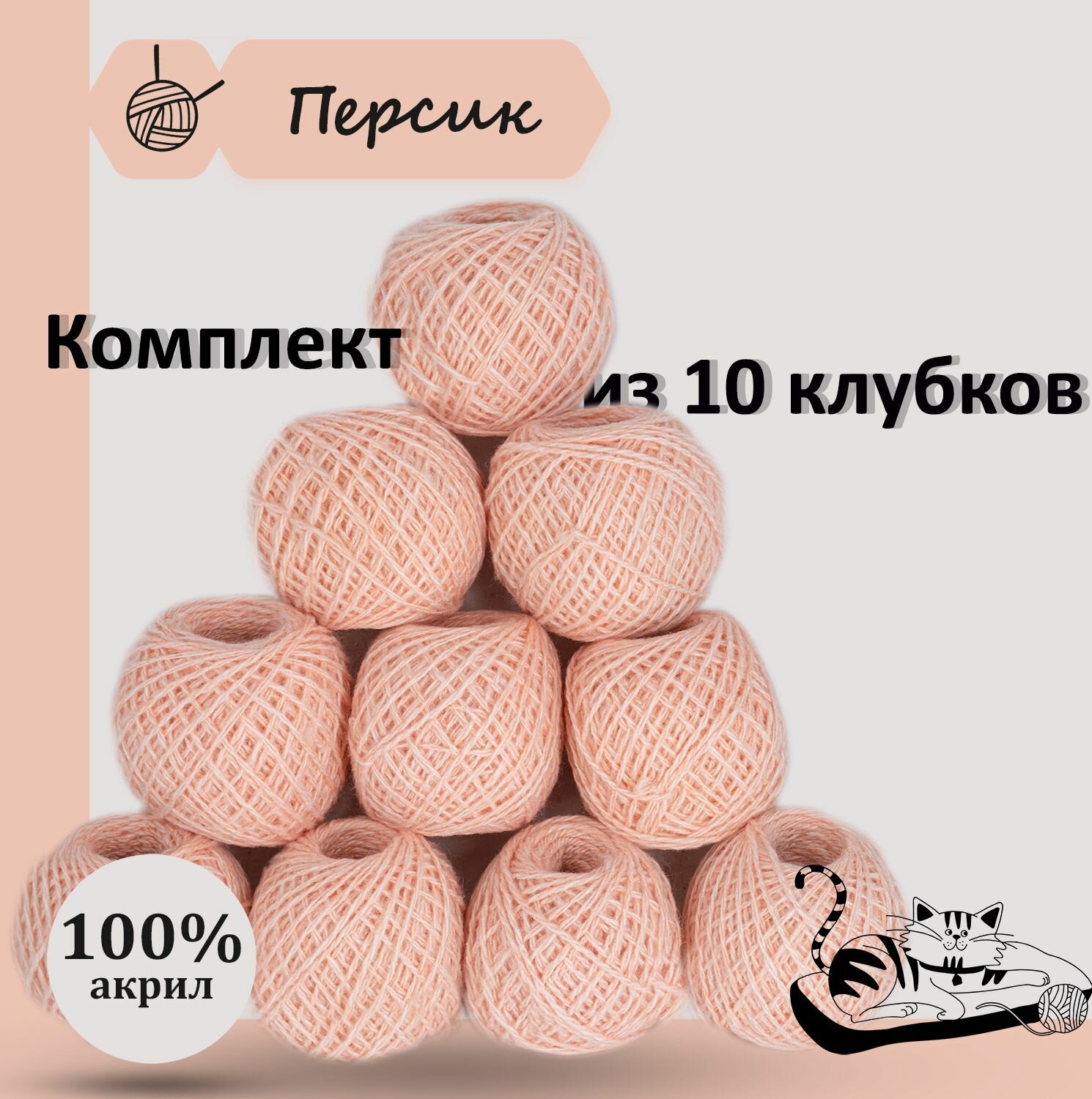 СохранитьПряжа для ручного вязания в клубочках. Набор 10 штук. Моток 40 грамм / 70 метров. Персиковый интересное: