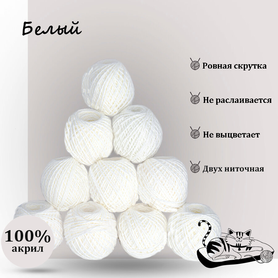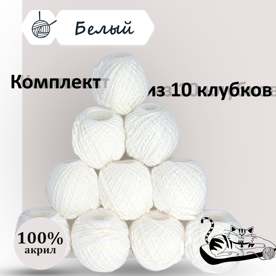 Купить Пряжа для ручного вязания в клубочках. Набор 10 штук. Моток 40 грамм / 70 метров. Белый
