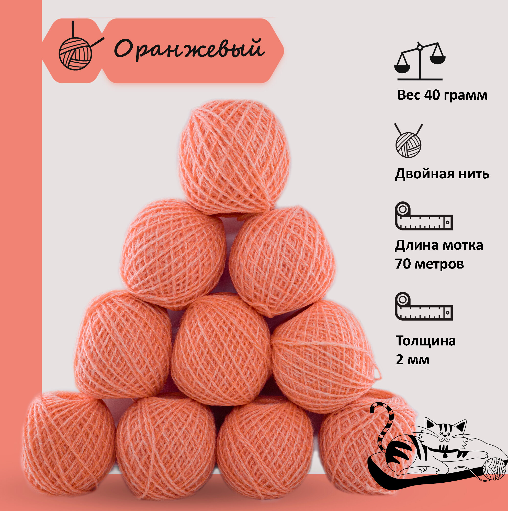 Купить Пряжа для ручного вязания в клубочках. Набор 10 штук. Моток 40 грамм / 70 метров. Оранжевый