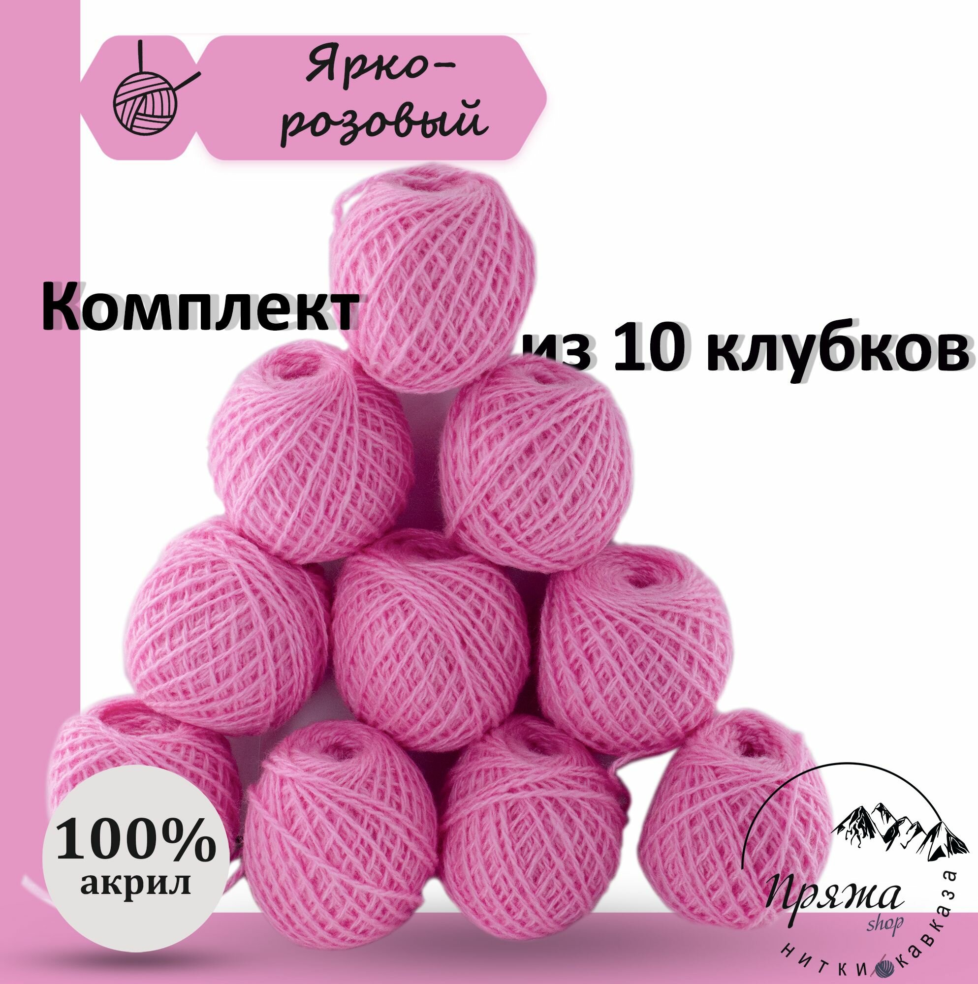Купить Пряжа для вязания спицами крючком в клубках. Набор 10 штук. Моток 40 грамм / 70 метров. Ярко - розовый