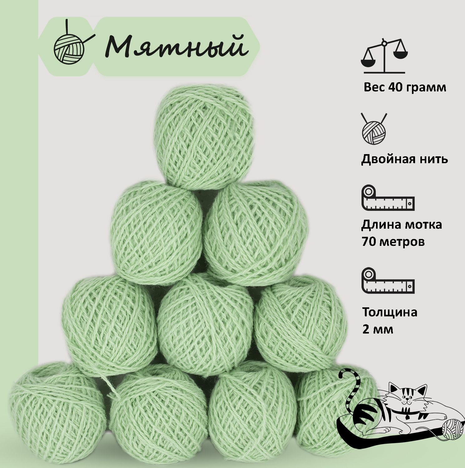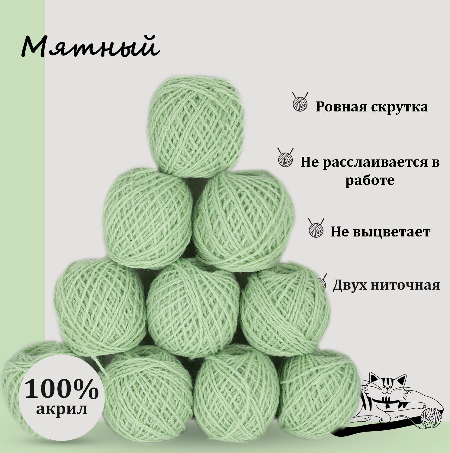Купить Пряжа для ручного вязания в клубочках. Набор 10 штук. Моток 40 грамм / 70 метров. Мятный