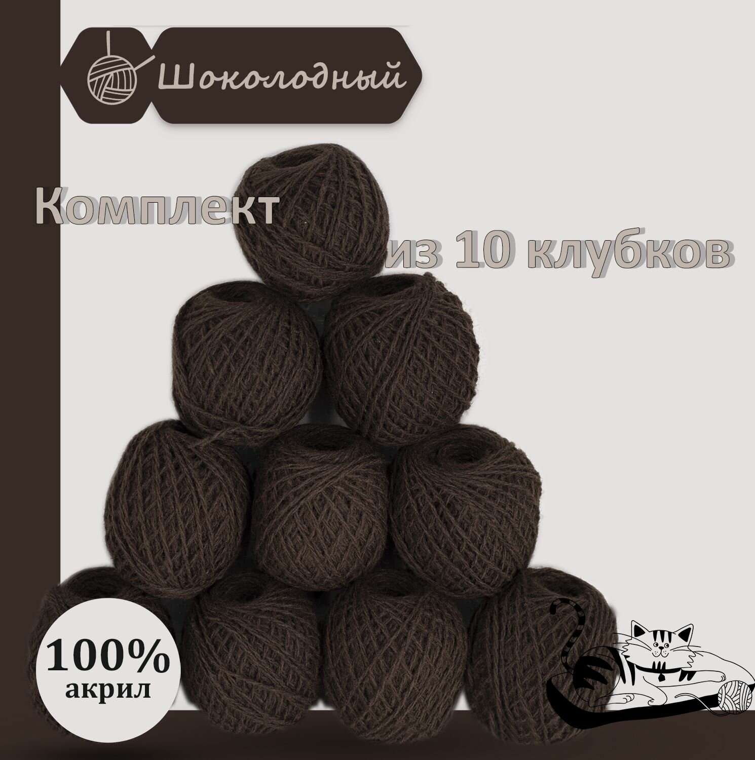 Купить Пряжа для ручного вязания в клубочках. Набор 10 штук. Моток 40 грамм / 70 метров. Шоколадный