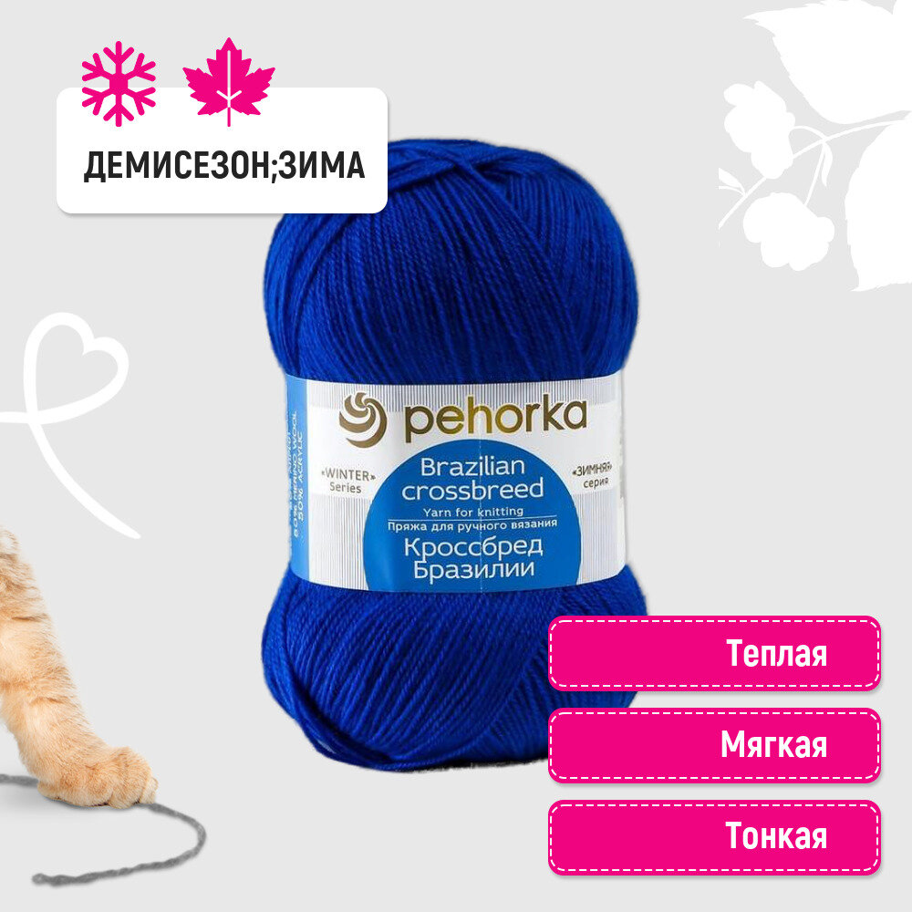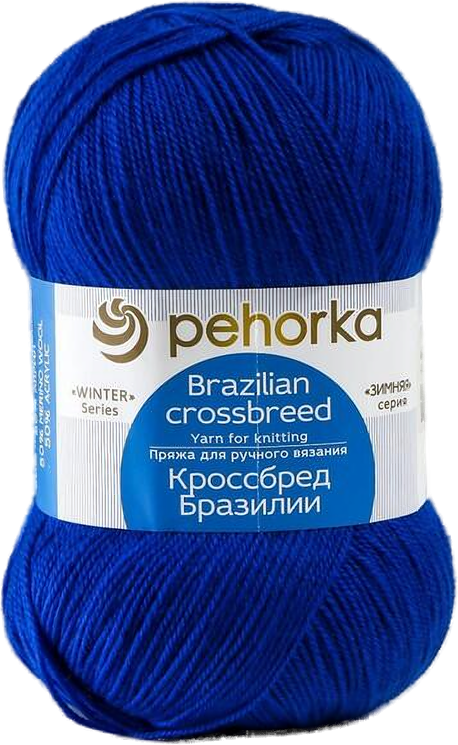 Пряжа Кроссбред Бразилии (Пехорка), Ультрамарин - 491, 50% мериносовая шерсть, 50% акрил, 5 мотков, 100 г, 500 м.