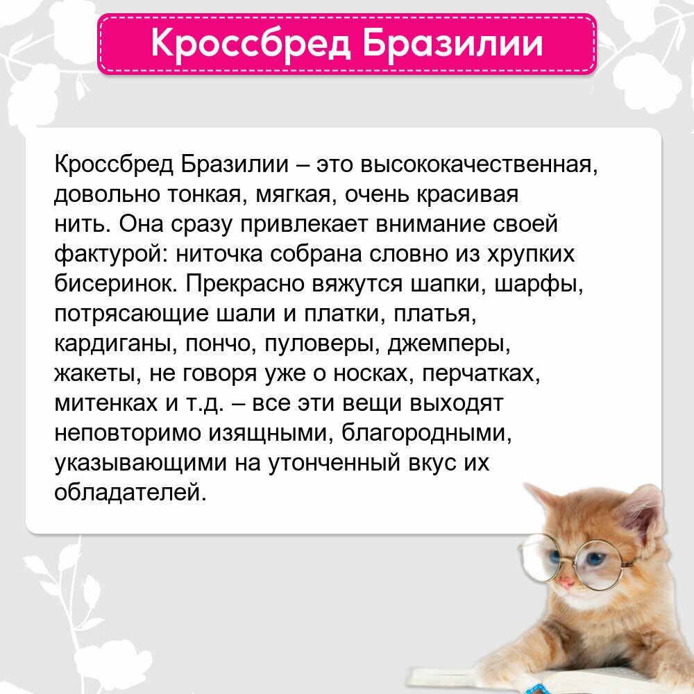| Дополнительная информация | назначение пряжи: аксессуары и предметы интерьера, джемперы, кардиганы, носки, перчатки, варежки |