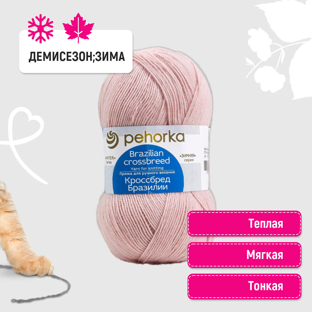 СохранитьПряжа для вязания Пехорка 'Кроссбред Бразилии' 100г, 500м (шерсть мериносовая, акрил) (374 Розовый беж), 5 шт интересное: