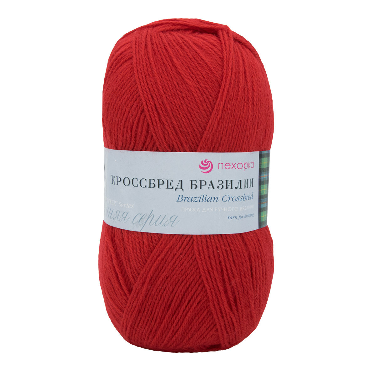 Пряжа Кроссбред Бразилии (Пехорка), Красный мак - 88, 50% мериносовая шерсть, 50% акрил, 5 мотков, 100 г, 500 м.