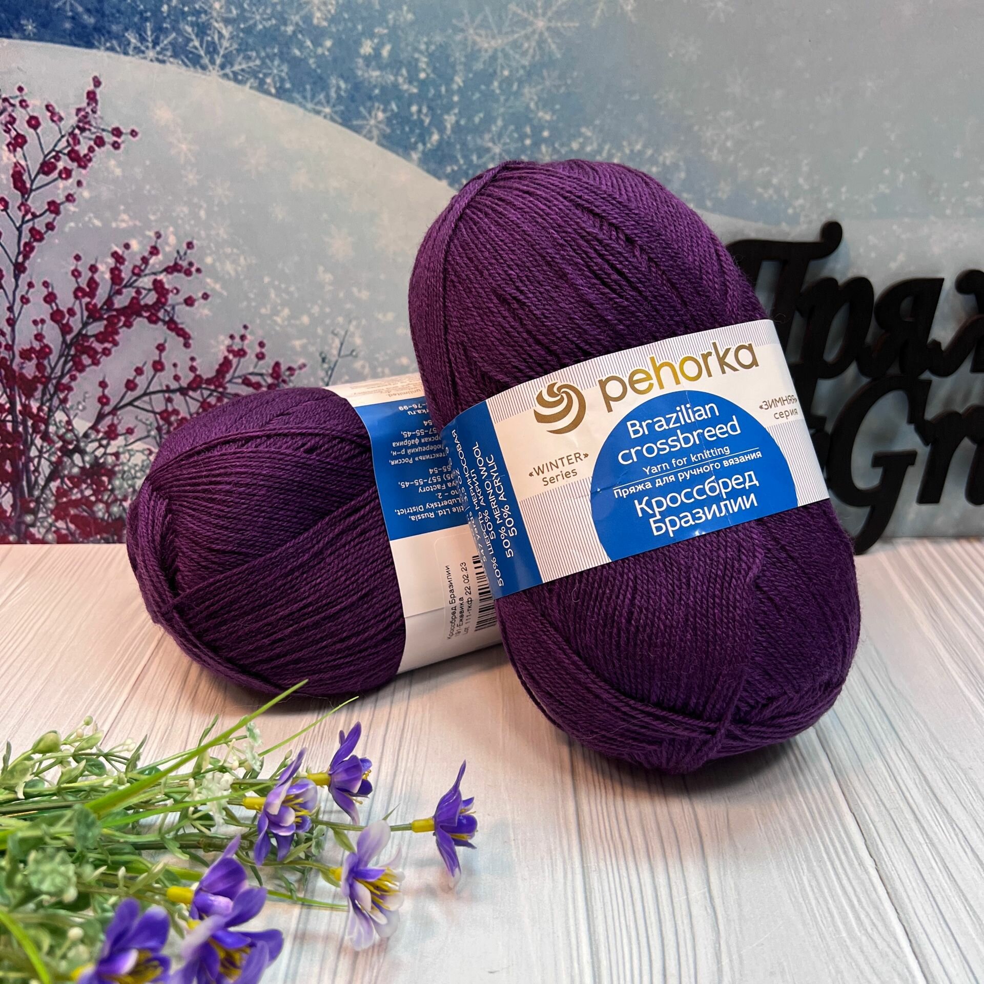 Пряжа Пехорка Кроссбред Бразилии - 1 моток 179 фиалка мериносовая шерсть-50% Акрил-50% 500м 100г