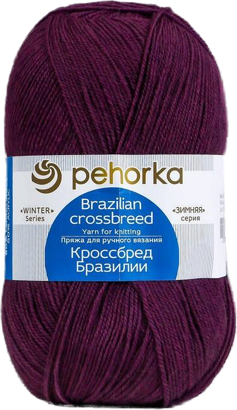 Пряжа Пехорка "Кроссбред Бразилии", 50% шерсть мериносовая, 50% акрил, 191 Ежевика, 5 шт