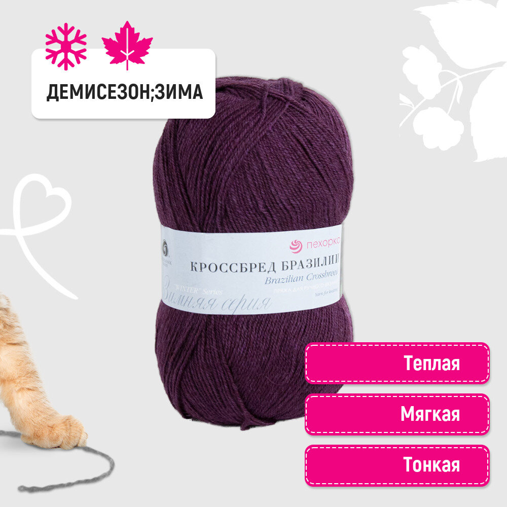 Пряжа "Кроссбред Бразилии" - 1 шт, (191-Ежевика), 500м/100г, 50% мериносовая шерсть, 50% акрил