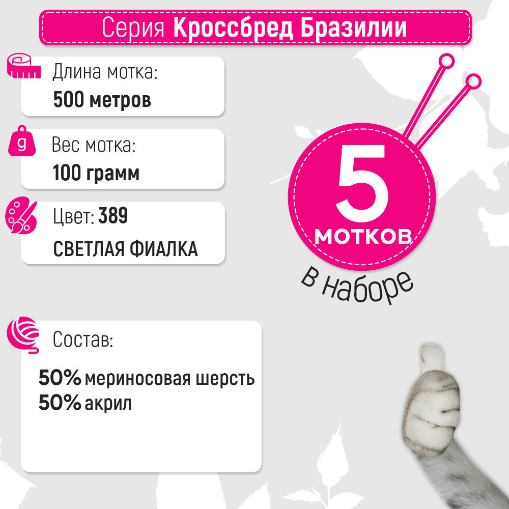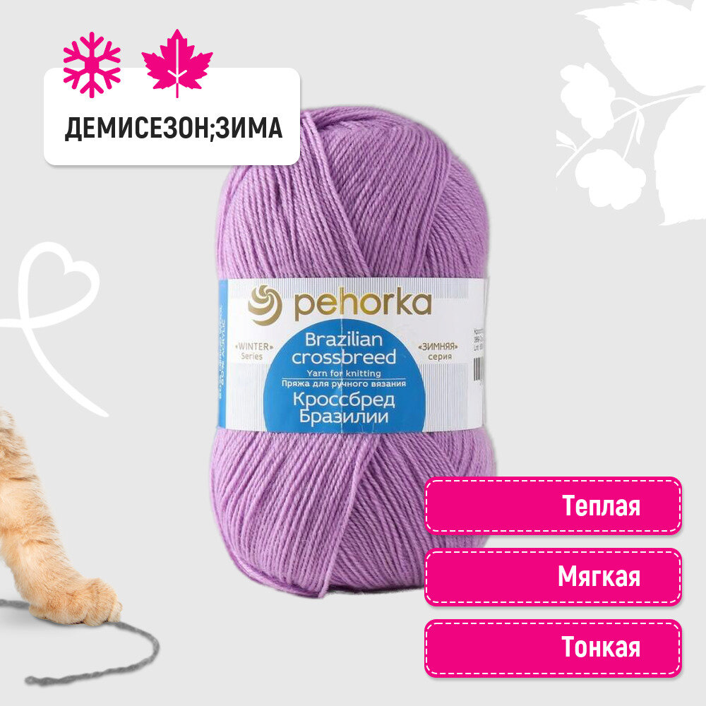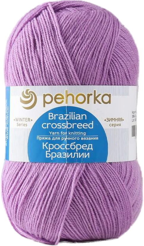 СохранитьПряжа для вязания Пехорка 'Кроссбред Бразилии', 100 г, 500 м (50% шерсть мериносовая, 50% акрил) (389 Светлая фиалка), 5 мотков интересное: