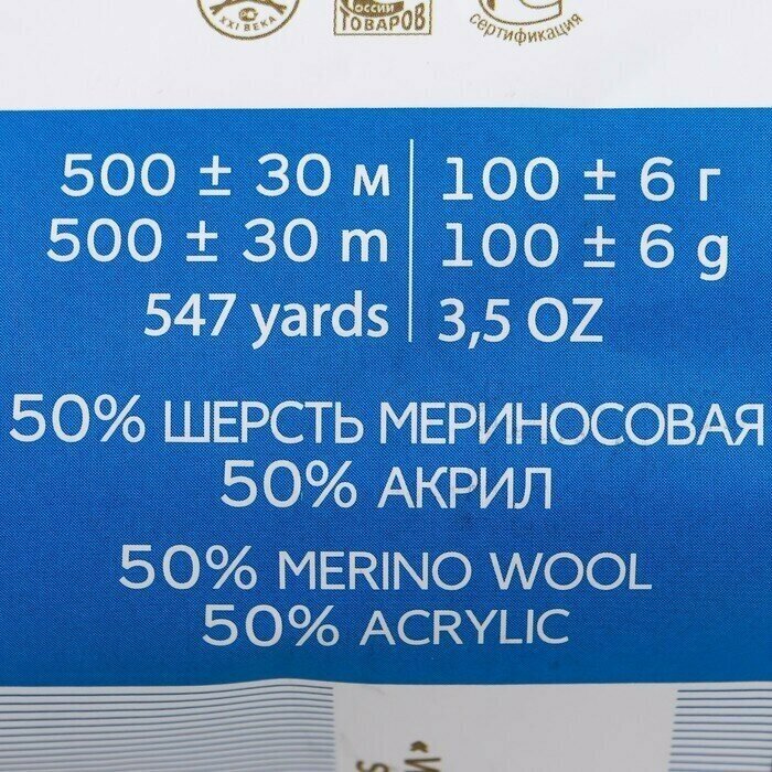 Пряжа для вязания Пехорка 'Кроссбред Бразилии', 100 г, 500 м (50% шерсть мериносовая, 50% акрил) (491 Ультрамарин), 5 мотков