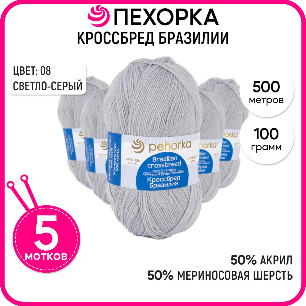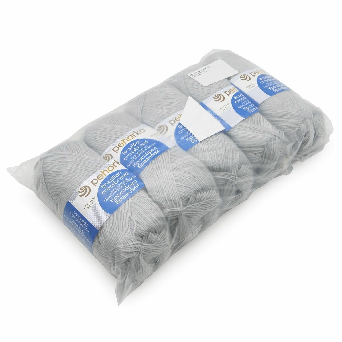 Пряжа Пехорка Кроссбред Бразилии 08 светло-серый (100г/500м, упаковка 5 мотков)