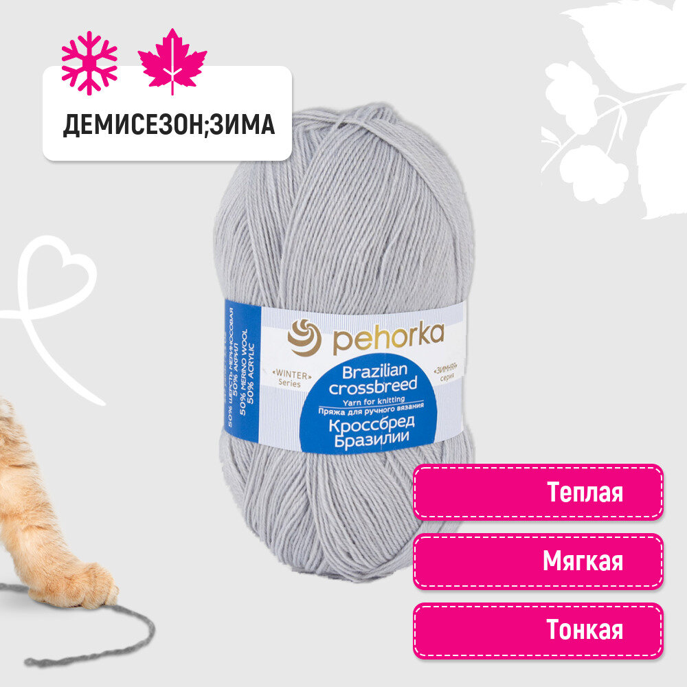 Пряжа Пехорка Кроссбред Бразилии светло-серый (008), 50%акрил/50%шерсть мериноса, 500м, 100г, 2шт