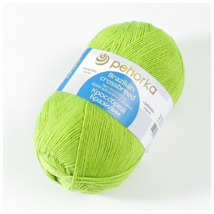 Пряжа для вязания Пехорка 'Кроссбред Бразилии', 100 г, 500 м (50% шерсть мериносовая, 50% акрил) (117 Киви), 5 мотков