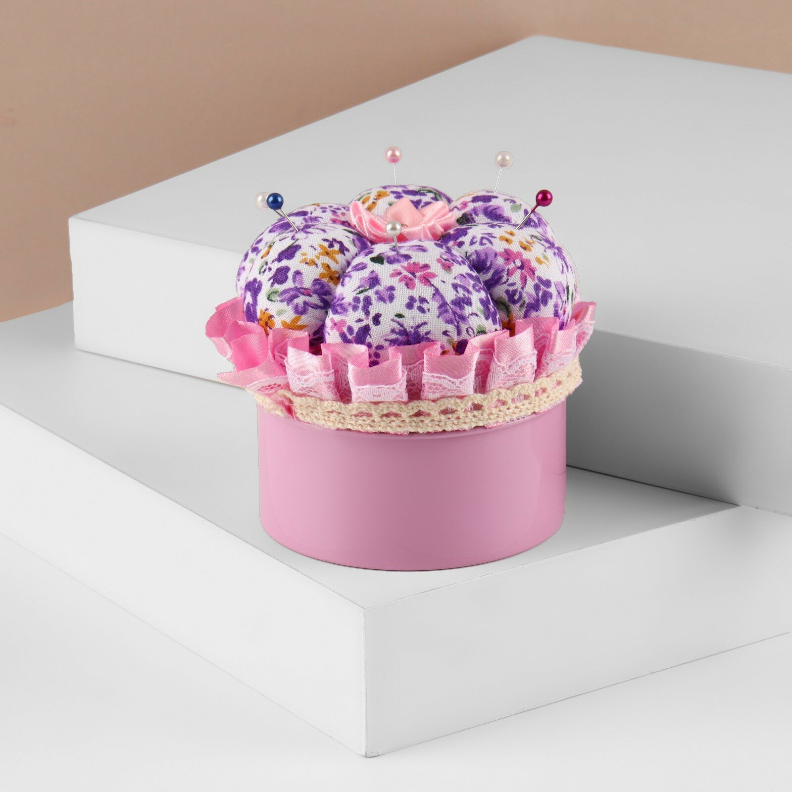 Купить Игольница со шкатулкой для хранения мелочей, 8 × 7,8 × 7,8 см, цвет микс