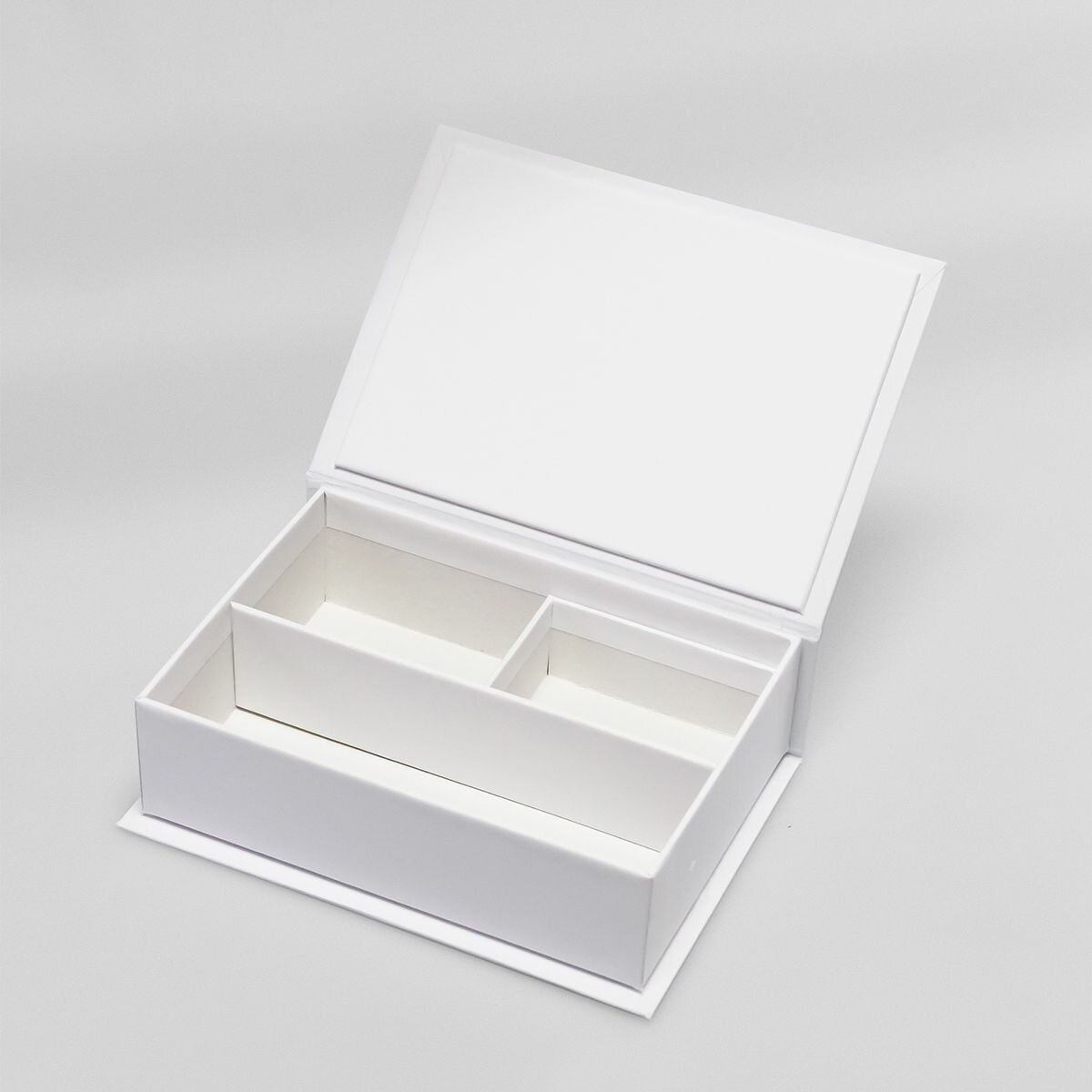 Подарочная Коробка - Шкатулка Cartonnage для рукоделия маленькая, 170 x 120 x 50 мм. "Мрамор", белый