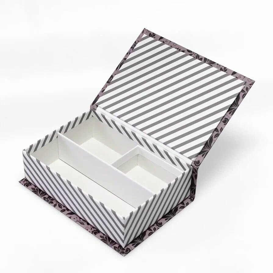Подарочная Коробка - Шкатулка Cartonnage для рукоделия маленькая, 170 x 120 x 50 мм. "Цветы/полоски", розовый