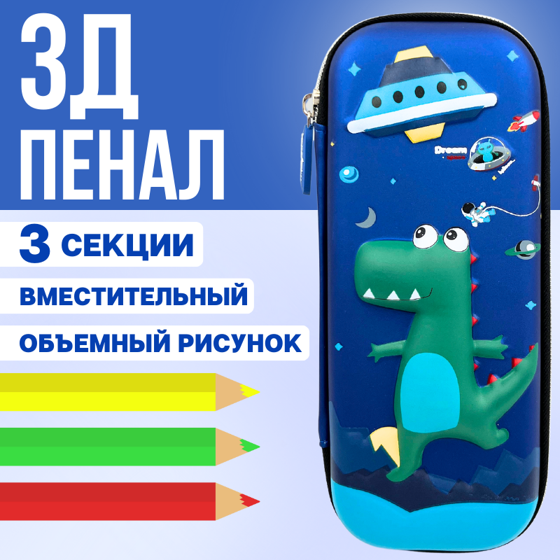 СохранитьПенал школьный 3д CANBI для мальчиков и девочек, динозавр зеленый интересное: