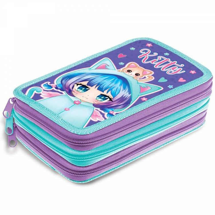 Пенал 3 отделения (Hatber) Девочка-кошка глянцевая ламинация 190х110мм арт.NPn_48100