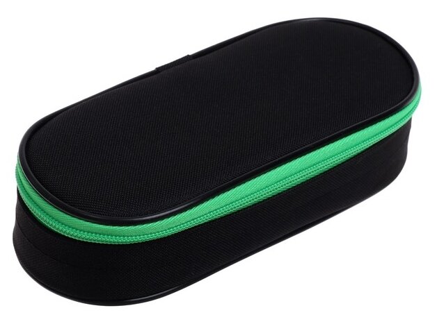 Пенал-футляр 95 x 205 x 45 мм, мягкий, текстильный, ПМК 27-20 Black, резинка на клапане, черный/зелёный