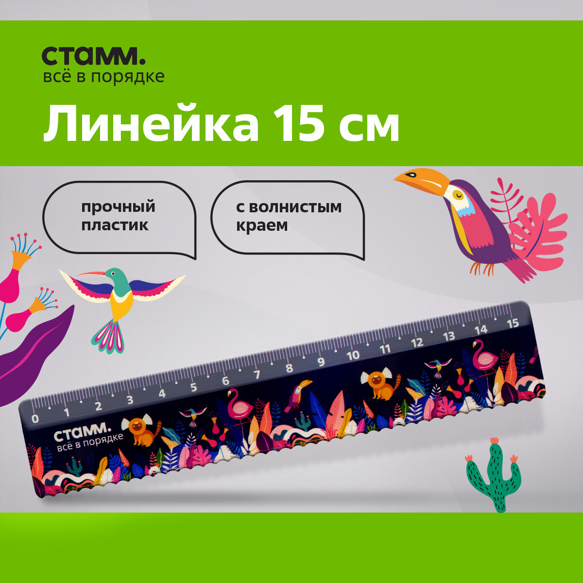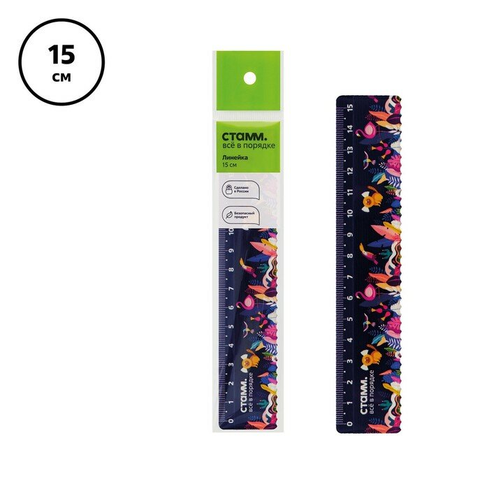 Линейка 15см СТАММ "Тропики", пластиковая, с волнистым краем, европодвес интересное: