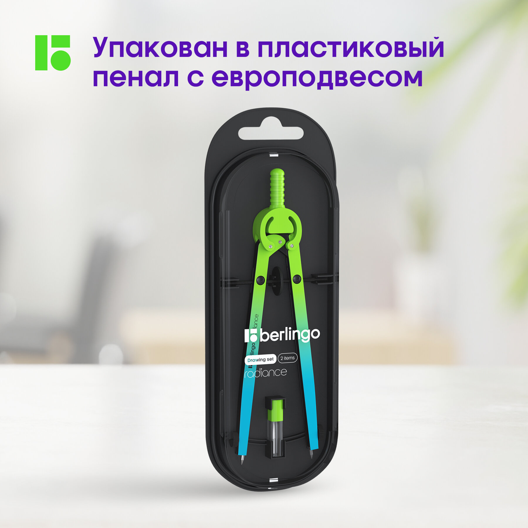 Готовальня Berlingo Radiance, 2 предмета, циркуль 170 мм, голубой, зеленый градиент (DS_01002a)