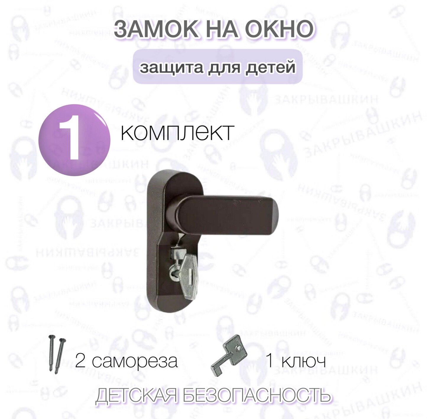 Блокиратор оконный для безопасности детей, замок с ключом, цвет коричневый, комплект 1 шт.