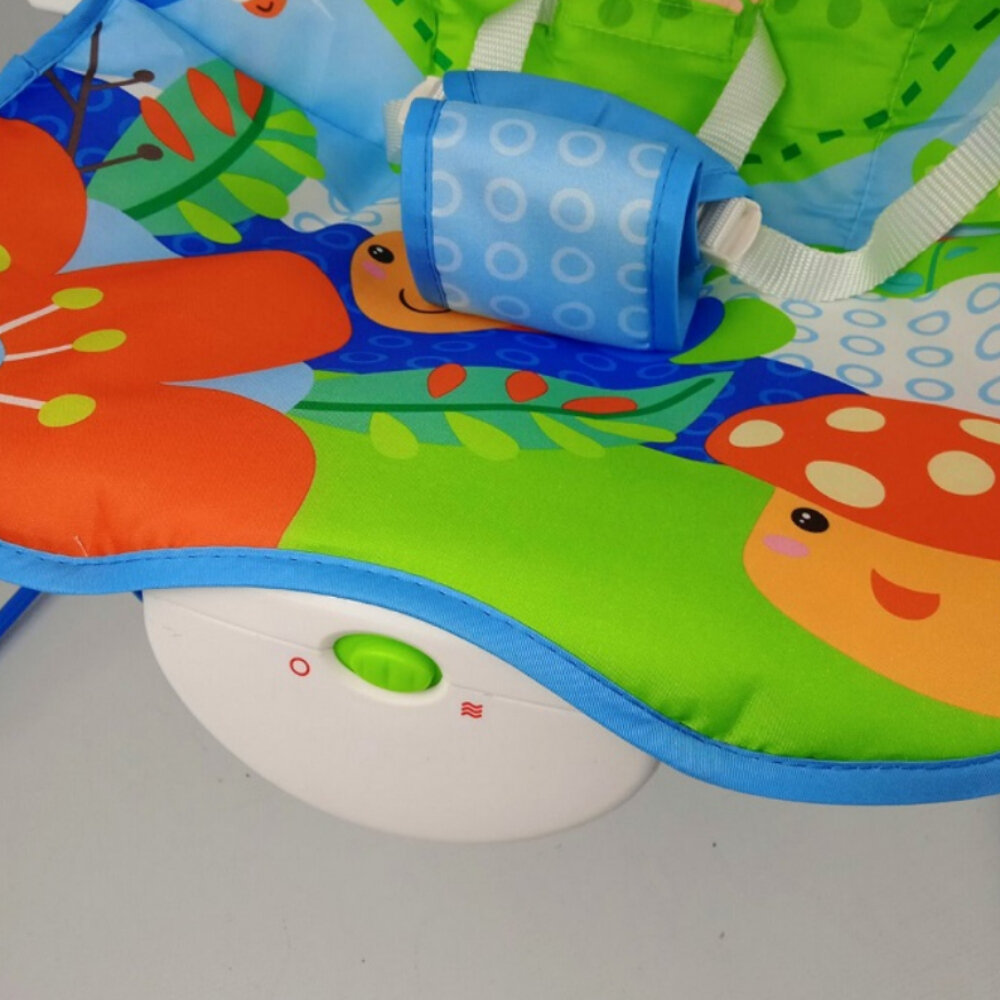Детский шезлонг кресло зеленый с вибрацией, до 11 кг, дуга с погремушками