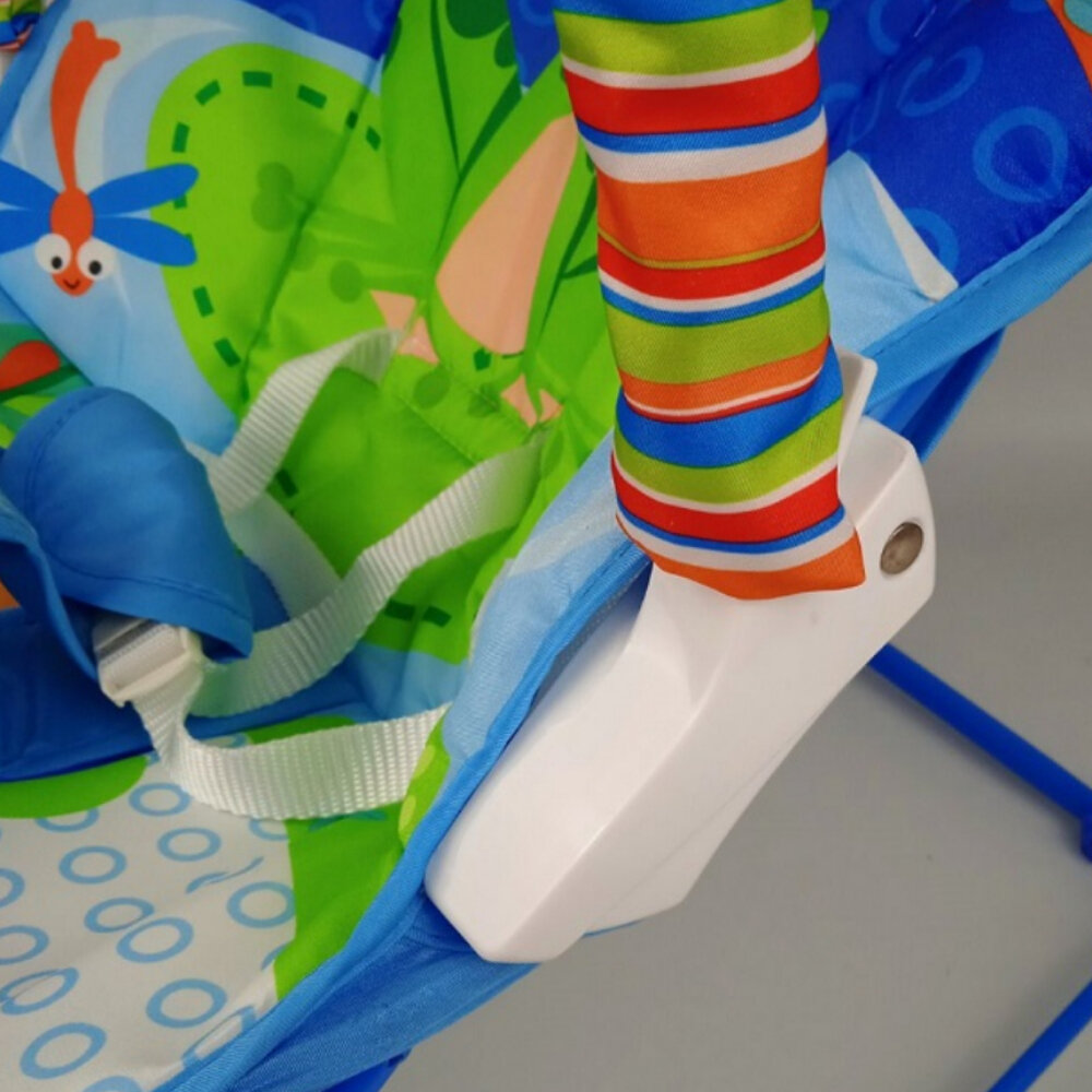Детский шезлонг кресло синий с вибрацией, до 11 кг, дуга с погремушками, музыкальная игрушка интересное: