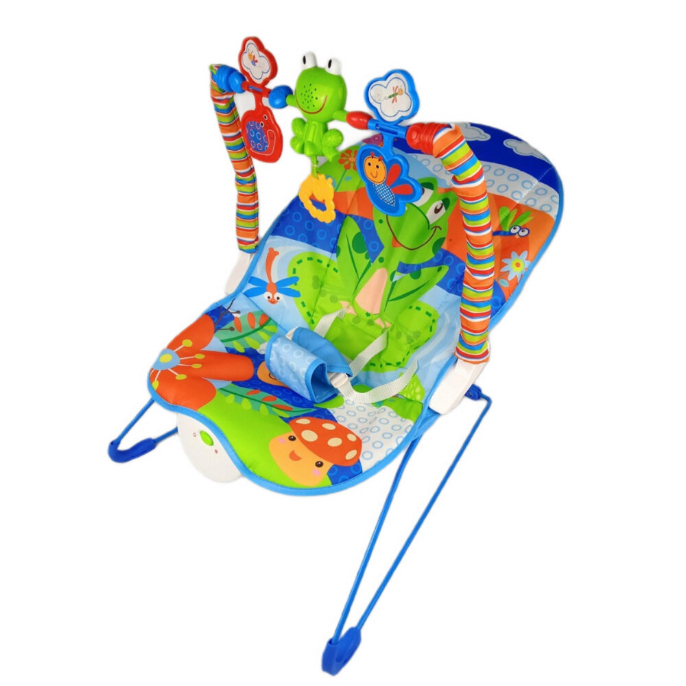 Купить Детский шезлонг кресло синий с вибрацией, до 11 кг, дуга с погремушками, музыкальная игрушка