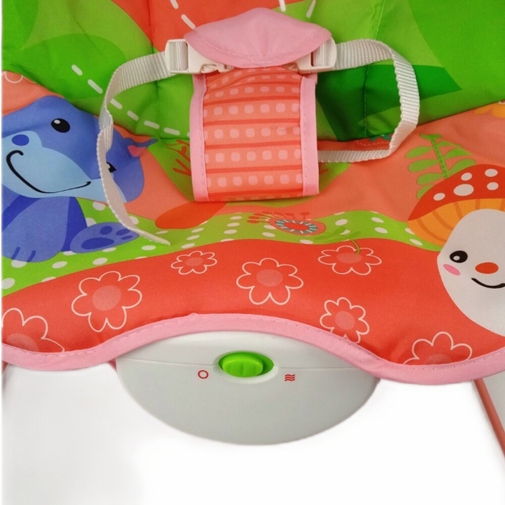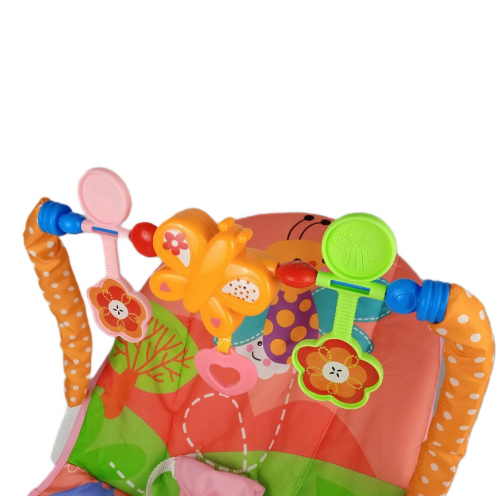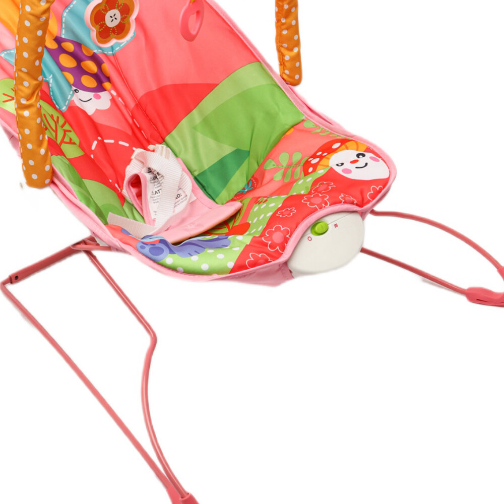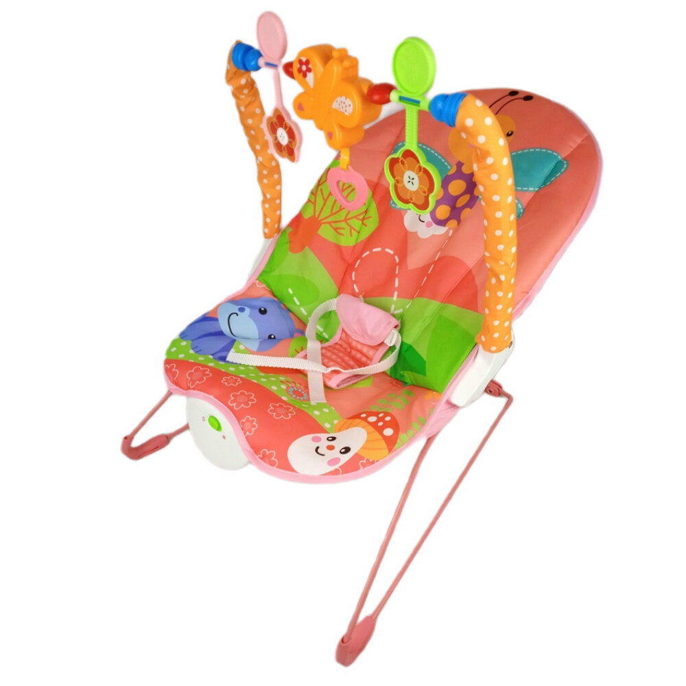 Детский шезлонг кресло розовый с вибрацией, до 11 кг, дуга с погремушками, музыкальная игрушка интересное: