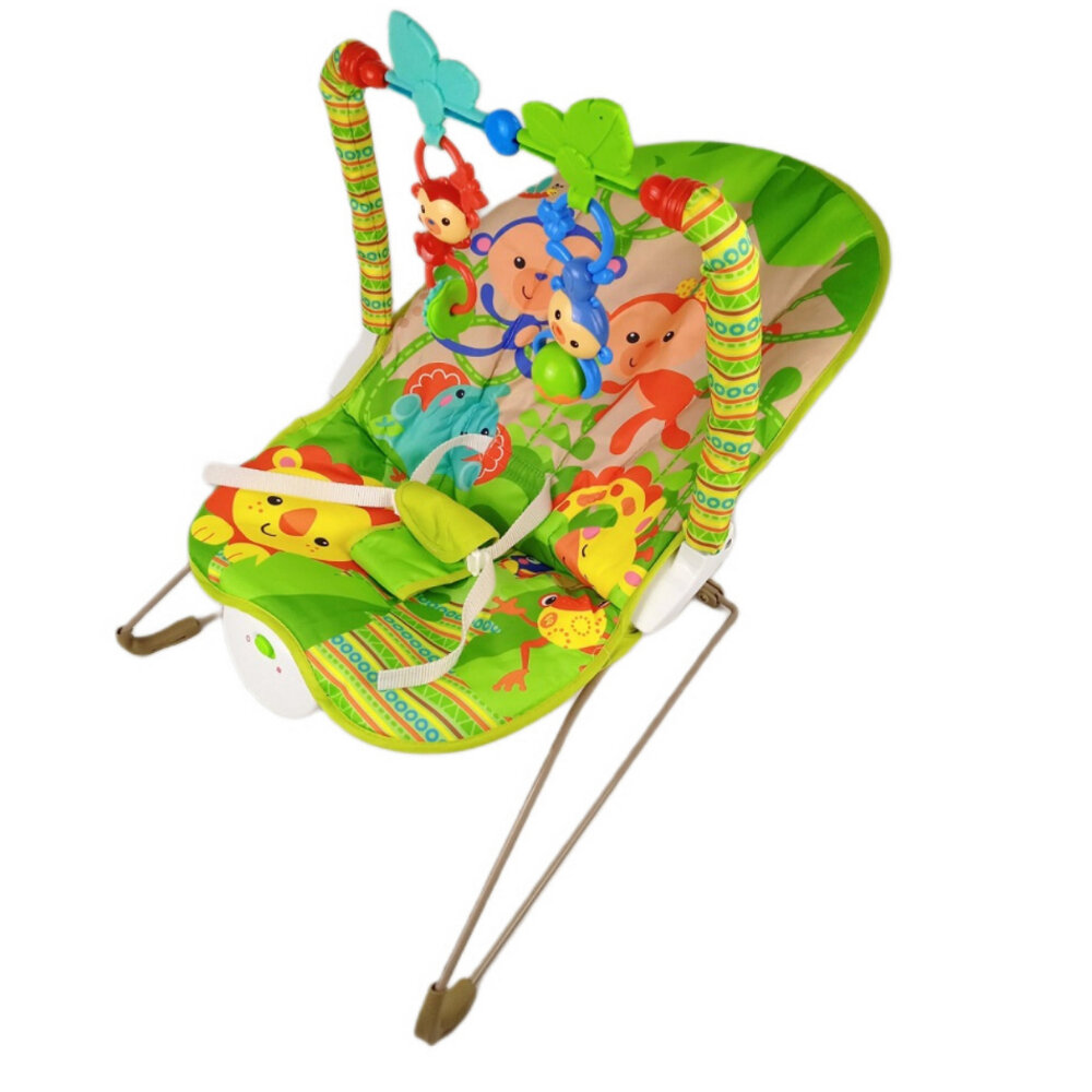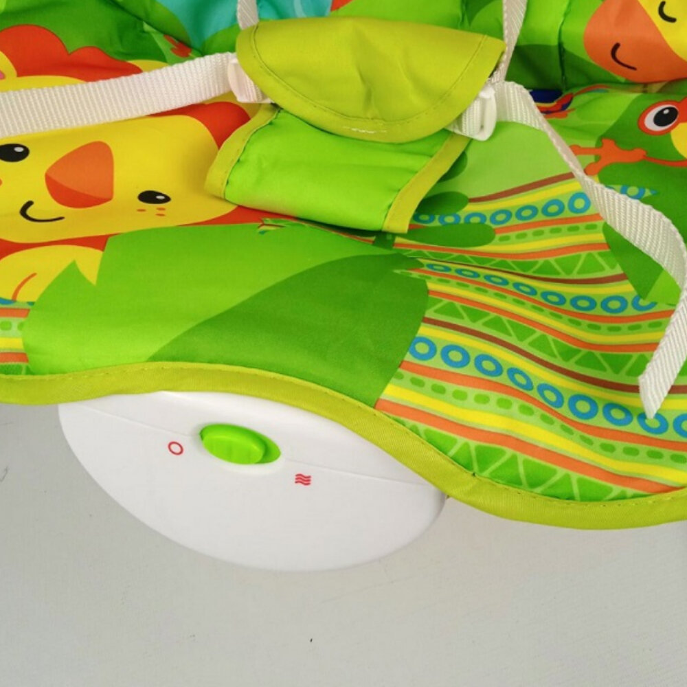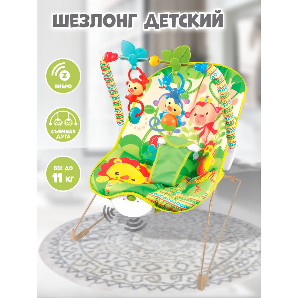 Купить Детский шезлонг кресло зеленый с вибрацией, до 11 кг, дуга с погремушками