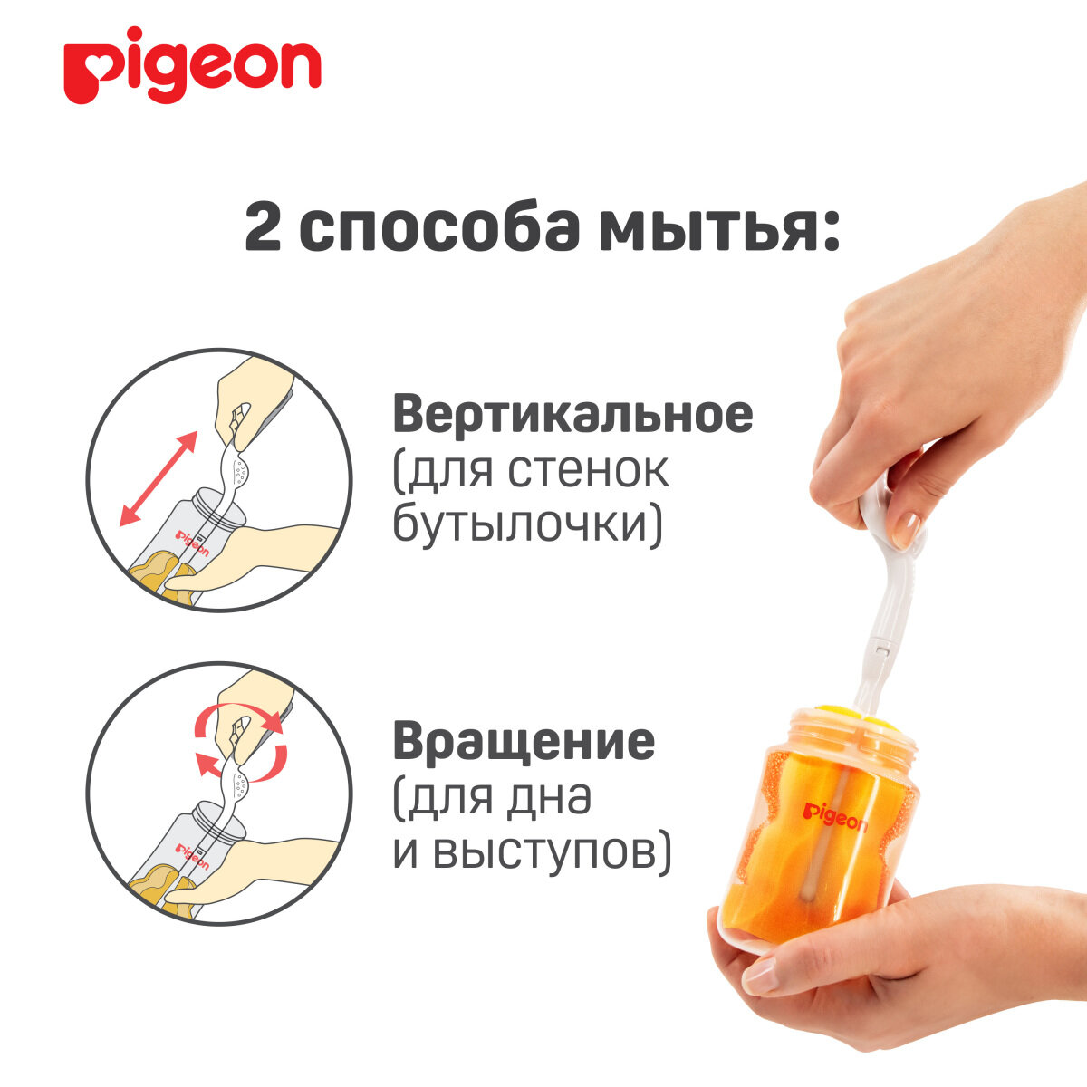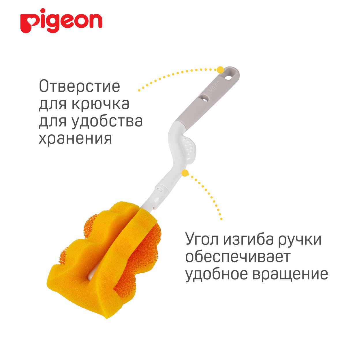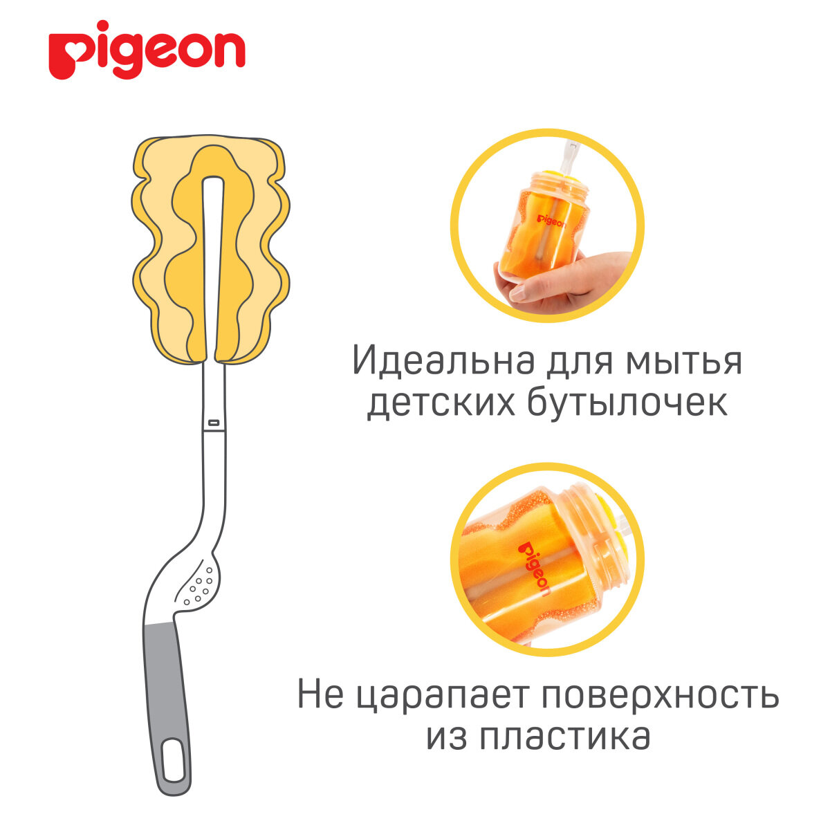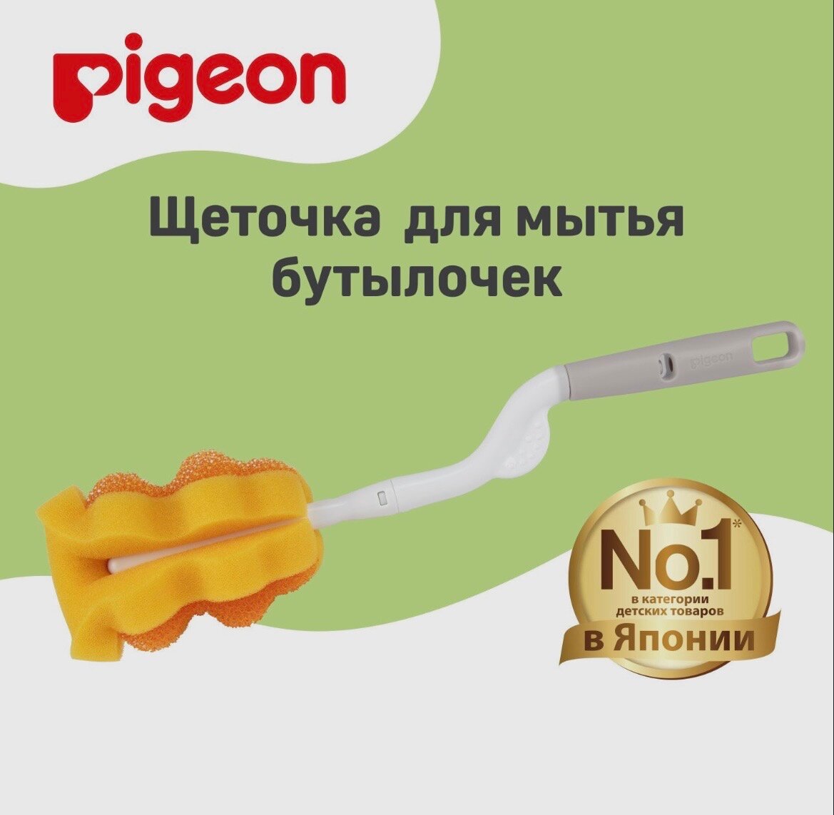 Щетка с губкой Pigeon для мытья детских бутылочек интересное: