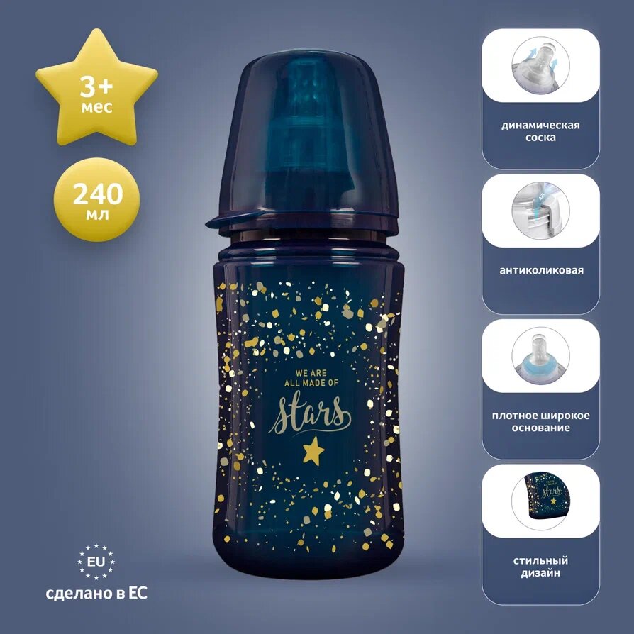 Бутылочка для кормления Lovi Stardust широкое горлышко, 240 мл, 3 мес+ интересное: