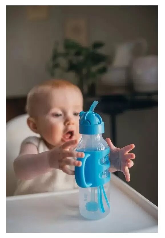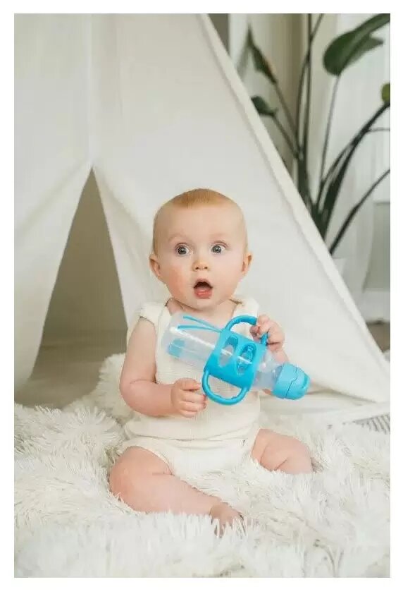 Бутылочка-поильник Dr. Brown's с узким горлышком с силиконовой трубочкой и грузиком 250 мл, с ручками, Синяя интересное: