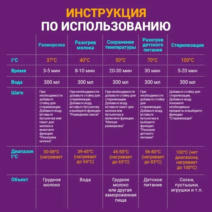 | Примечание | перед кормлением рекомендуется проверить температуру детского питания |