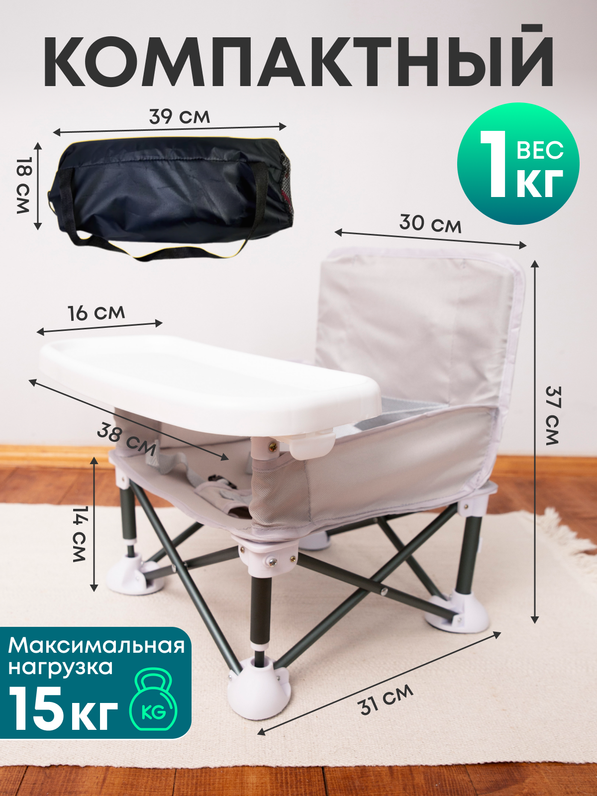 Купить Стул для кормления складной с чехлом и карманом с 6 месяцев, серый